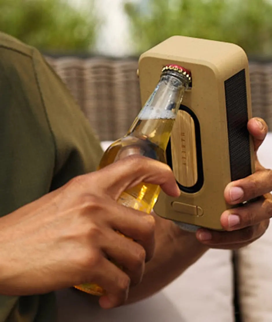 Excursiones y campamentos: Usás el parlante sin preocuparte por la batería gracias a su carga solar, y además podés abrir tus bebidas fácilmente.