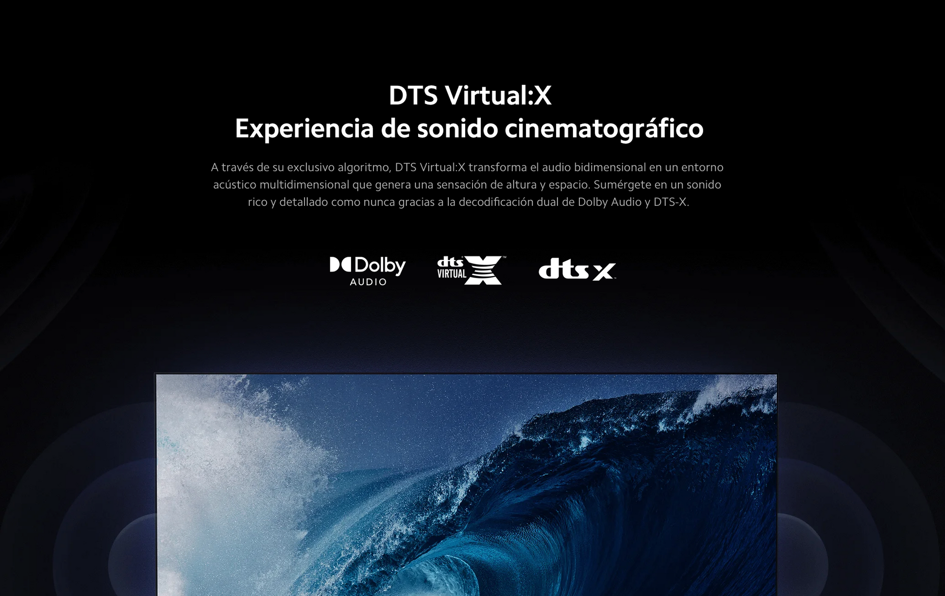Formato compacto de 32″ (HD) con resolución 1366 × 768 y audio Dolby Audio™, DTS‑X y DTS Virtual‑X que potencia el sonido virtual envolvente. Equipado con Google TV™, Chromecast integrado, control por voz y marcos ultra delgados con acabado metálico premium.